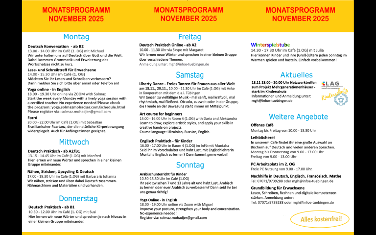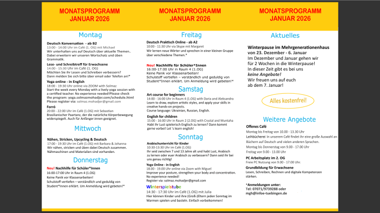 Unser Haus und unsere kostenlose Angebote stehen allen Menschen, so unterschiedlich sie sind, offen. Jede und jeder ist willkommen. Wir bieten Raum für gemeinsame Aktivitäten und schaffen ein nachbarschaftliches Miteinander und Zusammenhalt in unserer Stadt Tübingen.